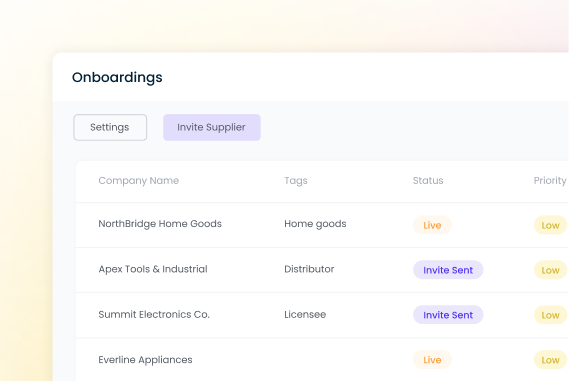 Automate supplier setup and compliance workflows. Launch new partners in days, not months.